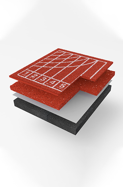 透氣型塑膠跑道是由底涂、彈性顆粒中層、面層組成的運(yùn)動場地。底涂為單組分聚氨酯膠黏劑,與空氣中的濕氣反應(yīng)固化;彈性顆粒中層由 PSV-211 單組分專用膠黏劑與 EPDM 顆粒按照 1:6~1:7 的質(zhì)量比混合后攤鋪而成;噴顆粒面層由 PSV-302 噴顆粒面膠、膠粉、EPDM 顆粒按比例混合,攪拌均勻后,噴涂于彈性顆粒中層上固化而成。
