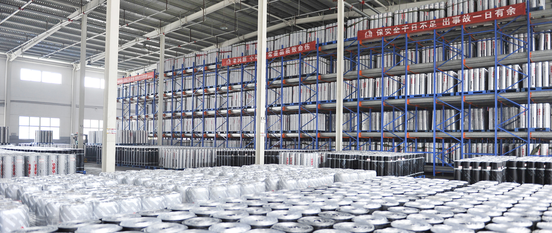 擁有包括3000型卷材生產線在內的兩條美國R&D改性瀝青卷材生產線、兩條意大利BAOTO改性瀝青卷材生產線,設計產能是年產4000萬平米改性瀝青防水卷材。擁有年產20萬噸砂漿生產線、年產4萬噸水性涂料生產線,年產2萬噸瀝青涂料生產線以及年產10萬噸聚氨酯生產線。唐山JN江南体育官方网站總倉儲面積是25000平方米,其中成品倉庫18000平方米,卷材成品倉庫最大存貨量為220萬平米,原材料倉庫7000平方米,儲罐儲存能力是27500立方米。
